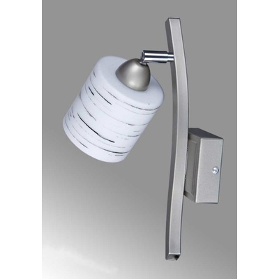 š = 25cm ; v = 31cm 1 x E14 ; max.40W ; 230V Nástěnné svítidlo vyrobené z kovu v povrchové úpravě stříbrná satyna v kombinaci s chromem. Stínidlo skleněné bílé + černé linky (detail viz.náhradní sklo). Stínidlo na kovovém kloubu je možno natáčet dle potřeby. Možno...