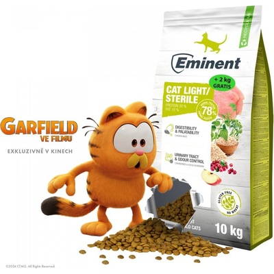 Eminent Cat Light Sterile 10kg INOVOVANÁ RECEPTURA (2023). Kompletní bezlepkové krmivo s příchutí kuřecího masa poskytuje dospělým kočkám s nadváhou nebo kastrovaným kočkám...