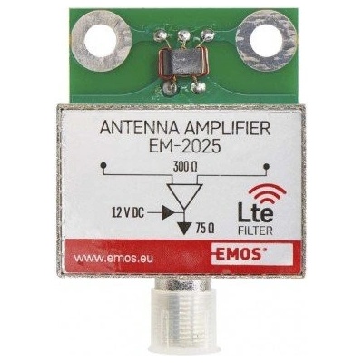 Anténní předzesilovač 25dB VHF/UHF, Emos Popis: BEN-025 předzesilovač je určen pro montáž do anténní krabičky se zesílením 25 dB. Zesilovač je v kovovém krytu čímž odrušuje vnější vlivy a je zakončen konektorem F. Pracuje v pásmu BIII, IV, V a má certifikaci CE. Rozteč...