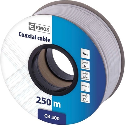 EMOS CB 500 je koaxiální kabel o průměru 5 mm s pěnovým dielektrikem a dvojitým stíněním. Použití pro anténní, satelitní, kabelové rozvody, ale i pro kamerové systémy. Prodej na...