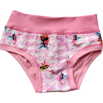 Dívčí kalhotky Emy Bimba zdobené obrázky krásných víl, v růžové barvě, bavlněné s plochými lemy a bez gumiček, velmi pohodlné, od 2 do 15 let Složení: 90 % bavlna, 10 %...