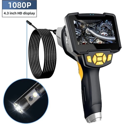 Průmyslový endoskop 4,3" 1080P HD 8mm, duální kamera: hlavní a boční, pevný kabel 5m PARAMETRY: •Kamera: dvě kamery - hlavní a boční, s regulovatelným přísvitem •Display: 4,3"...