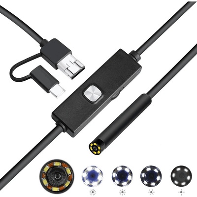 INSPEKČNÍ ENDOSKOPICKÁ KAMERA ANDROID 5M 8MM FULL HD S USB, USB-C a MICRO USBNová, inovativní plně vodotěsná endoskopická kamera s 8 LED diodami s nastavitelnou intenzitou...