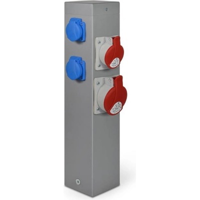 Zásuvkový lakovaný kovový sloupek v elegantním a čistém designu osazený zásuvkami 2x 250V + 1x 400V/16A + 1x400V/32A pro povrchovou montáž. Výška sloupku je 500mm, připojení...