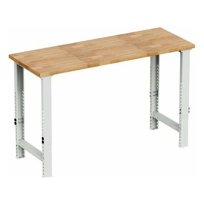 Pracovní deska 40 mm vodovzdorná buková spárovka. Noha výška 790 - 1030, šířka 150, hloubka 699 mm. Stůl má nosnost 500 kg, výšku 830 - 1070, šířku 1500, hloubku 750 mm, barva konstrukce světle šedá RAL 7035.