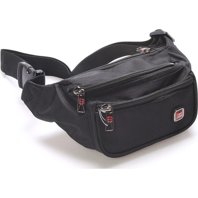 Černá pánská nylonová ledvinka s červenými detaily na doklady a osobní věci Enrico Benetti s logem. Taška má tři velké kapsy na zip, uvnitř jednu volnou síťovanou například na menší peněženku. Je zde možnost využít dvě kapsičky na menši tužku a pero. Popruh je...