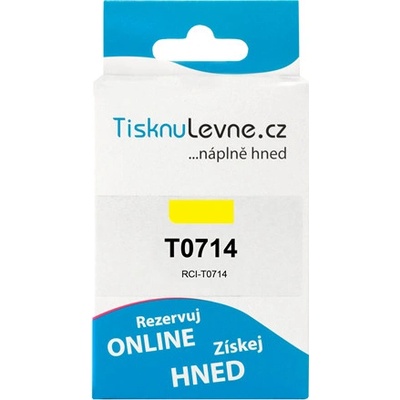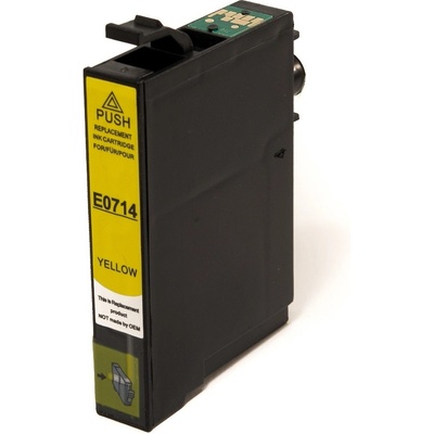 Cartridge Epson T0714 žlutá - kompatibilní inkoustová náplň Alternativní žlutá inkoustová náplň o objemu 19ml, určená pro tiskárny Epson Stylus: D78 / D92 / D120 / DX4000 /...