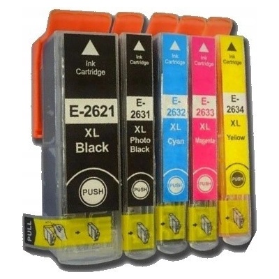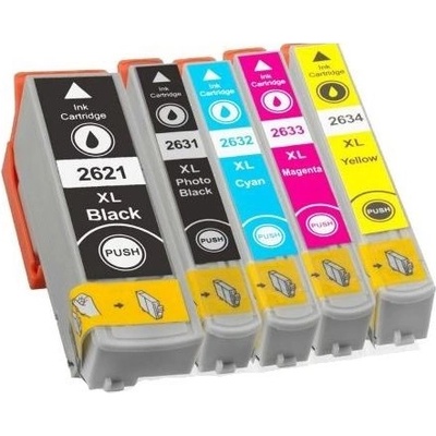 Součástí sady je:Náhrada za T2621 - cartridge black, černáNáhrada za T2631 - cartridge photo black, foto černáNáhrada za T2632 - cartridge cyan, modrá, azurováNáhrada za T2633- cartridge magenta, červená, purpurováNáhrada za T2634 - cartridge yellow, žlutá