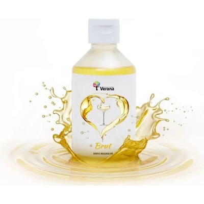 VERANA Erotický masážní olej Brut 250 ML Povzbuzující svěží vůně šampaňského pomáhá zmírnit emocionální stres, relaxovat, zvyšuje pocit sexuality a stupňuje vzrušení u...