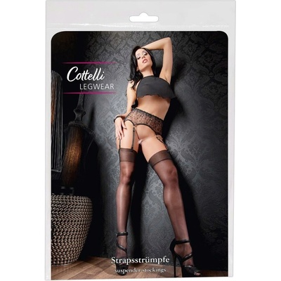 Cottelli – hedvábné punčochy (černé) Punčochy z 20DEN transparentního, pružného, kvalitního, hedvábného materiálu. Se širokým lemem, předtvarovaná část chodidla. K nošení...