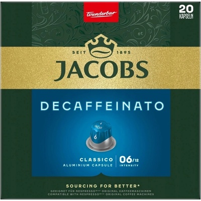 Jacobs Decaffeinato 6 Lungo kapsle do Nespresso® 20ks Toto jemné lungo kombinuje vysoce kvalitní Arabicu s intenzivní Robustou. - Výsledkem je měkký, svěží charakter s...