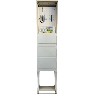 Skříň je vyrobena v celoplastovém provedení z termosetu z SMC-prepreg materiálu, který je odolný proti povětrnostním vlivům, vodě a UV zářením. Prodloužení životnosti je navíc zajištěno UV ochranným nástřikem v barevném odstínu RAL7035. Materiál nepodléhá korozi,...