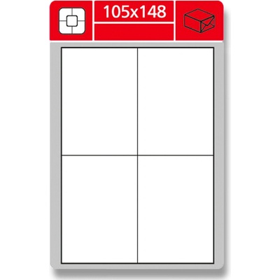 - Bílé samolepicí etikety jak pro laserové a inkoustové tiskárny, tak pro kopírky - Na listech formátu A4 - Balení: 100 listů - Rozměr:105 x 148,5 mm, etiket na archu: 4 ks -...