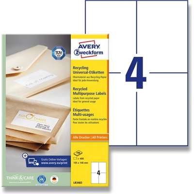 - Bílé samolepicí etikety jak pro laserové a inkoustové tiskárny, tak pro kopírky - Na listech formátu A4 - Balení: 100 listů - Rozměr:105 x 148,5 mm, etiket na archu: 4 ks -...