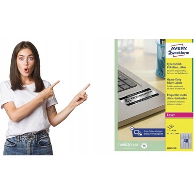 100 listů A4, rozměr 45,7x21,2 mm, 4.800 ks etiket v balení, odolná polyesterová fólie, permanentní lepidlo, barva stříbrná. Typ tiskárny: č/b laser. Použití: označování...