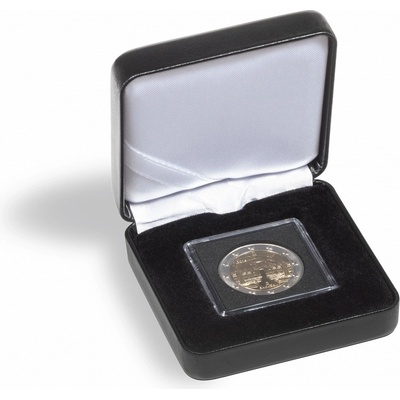 Etue se prodává s jednou kapslí QUADRUM bez výřezu. Maximální průměr mince je 41 mm. Výstelka je z černého sametu. Magnetické víko.