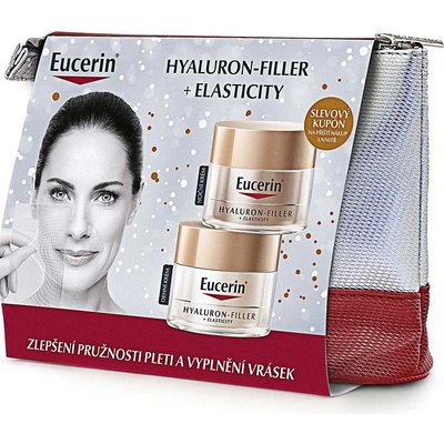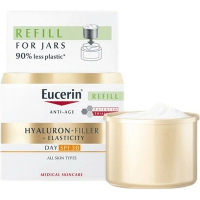 Eucerin Hyaluron-Filler + Elasticity SPF30 denní krém a náhradní náplň zlepšuje pružnost pleti, vyplňuje hluboké vrásky, redukuje pigmentové skvrny a chrání před UV zářením.