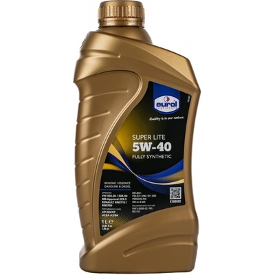 EUROL SUPER LITE 5W-40 A3/B4 1L Splňuje specifikace: - API SN/ CF - ACEA A3/B4 - VW 502.00 - VW 505.00 - MB-Approval 229.3/ 229.1 - Renault RN0700/ RN0710 - PSA B71 2296 / PSA B71 2293 - GM-LL-B-025 - Porsche A40 - Fiat 9.55535-M2/ H2 Plně syntetický motorový olej...