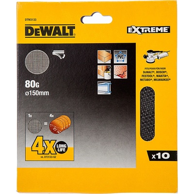 Až 4x delší životnost oproti standardním abrazivům DEWALT Otevřená textilní struktura brusného roštu umožňuje účinné odstranění brusného prachu, tím je dosaženo jemnějšího...