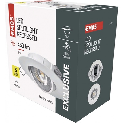 EMOS LED bodové svítidlo Exclusive bílé 5W, neutrální bílá (1540115570)Moderní a flexibilní řešení pro každý interiérVestavné bodové LED svítidlo EMOS Exclusive je ideální volbou pro ty, kteří hledají úsporné, dlouhodobě spolehlivé a designově čisté osvětlení do...