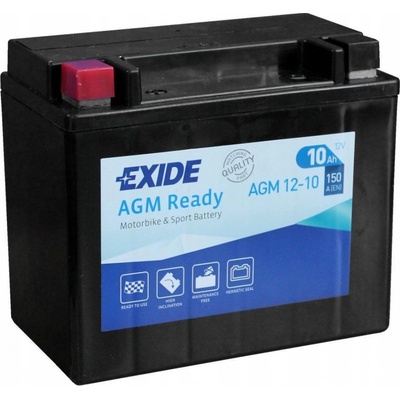 Popis produktu Bezúdržbový motocyklový akumulátor předního světového výrobce baterií Exide AGM12-10 (12V-10Ah)- akumulátory Exide s technologií AGM jsou vhodné do zhoršených podmínek (ideální pro m