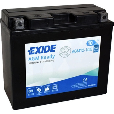 EXIDE 12V 10Ah 160A AGM12-10.5 (YT12B-4) motobaterie VLASTNOSTI Velmi vysoký výkon + odolnost vůči hlubokému vybití. Možnost instalace v různých polohách. Hermeticky...