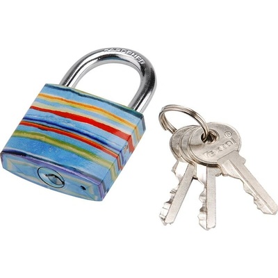 zámek visací litinový barevný, 38 mm. info Uzamykatelný bez použití klíče zacvaknutím. technické parametry 38 mm. značka EXTOL CRAFT.