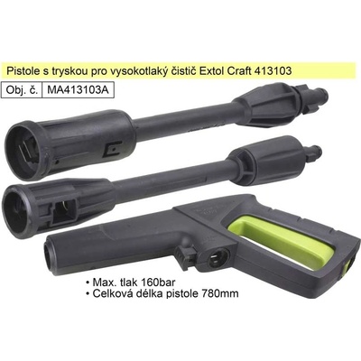Pistole, pro 413103, EXTOL CRAFT Hlavní technické parametry: popis: pro 413103 Kvalitní náhradní pistole určená pro vysokotlaký čistič.