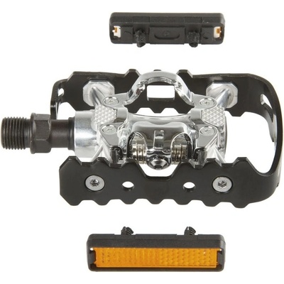 Jedna strana pedálu obsahuje nášlapný SPD systém, druhá strana je pak klasický volný pedál. Materiál: Al stříbrné tělo + černá plastová klec Osa: CrMo zapouzdřená Barva: stříbrno - černá Odrazky: ano Jednostranné - jedna strana pro kufry/ zarážky, druhá strana pro...