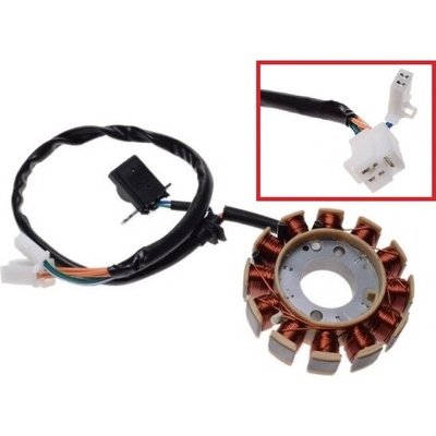 stator zapalování 12 cívek/ 2 konektory / 5 kabelů 152QMI-E4 GY6 125-150 EURO 4 12 cívek 3 +2 piny Rozteč děr pro přišroubování - 41 mm. Průměr statoru 88 mm. Rozteč děr na...