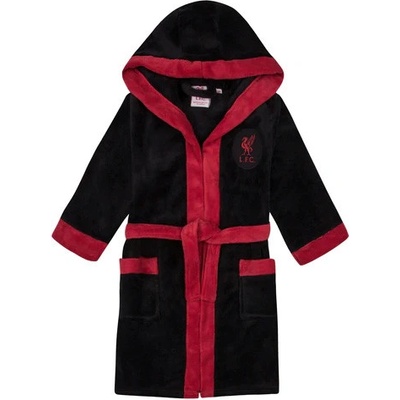 Dětský župan Liverpool FC v černé barvě. Červené lemování. Našitý znak klubu. Praktický pásek. Příjemná kapuce. Dvě prostorné kapsy. Poutko na zavěšení. Kvalitní fleece....