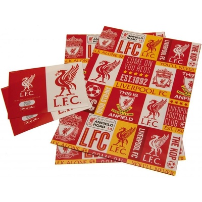 Balící papír Liverpool FC. 2 listy 70 x 50 cm. 2 dárkové cedulky.