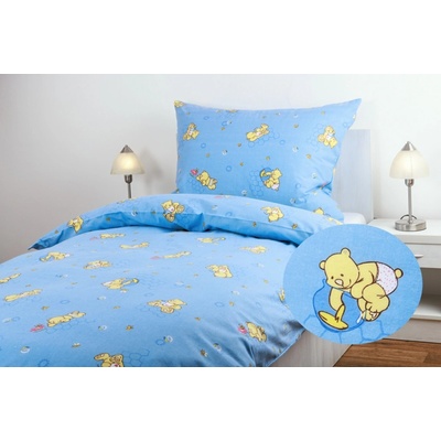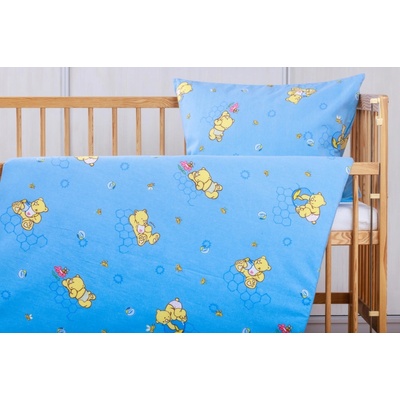 Flanelové povlečení do postýlky - medvídek a včelka modré 135x100/60x40 cm
