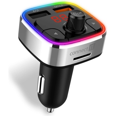 CONNECT IT CarRGB Bezdrátový FM transmitter, 2xUSB+MicroSD, STŘÍBRNÝ INCARZ TRANSMITTER RGB, Stříbrná --- Bluetooth transmitter CarRGB s multibarevným volitelným RGB podsvícením...