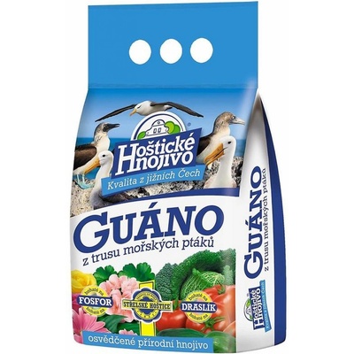 Hoštické hnojivo - GUÁNO granulované 2,5 kg Guáno je čistě přírodní surovina, vzniklá mineralizací ptačího trusu na pobřežích Jižní Ameriky. Vzhledem ke svému složení je po...