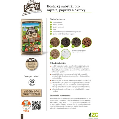 Popis: Hoštický substrát pro rajčata, papriky a okurky je vyroben ze směsi vytříděné světlé a tmavé rašeliny, kvalitního vytříděného zeleného kompostu, lávy a organických...