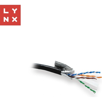 LYNX FTP kabel Cat6, PE (Fca), celoměděný, venkovní, černý, box 305m Provedení: FTP (stínění fólií) Plášť: PE (polyethylen) Kategorie: Cat6 Určení: Venkovní instalace Délka balení: 305 m (box) Barva: Černá Vodič: Celoměděný (solid copper)
