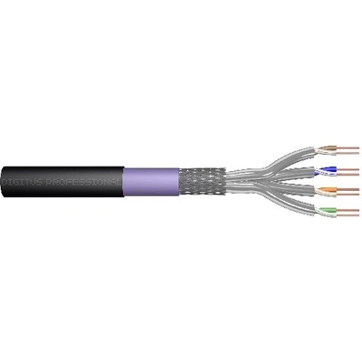 Kabelový instalační kabel Cat.7 S / FTP, 100 m, simplex, PE Kabel pro venkovní instalaci CAT 7 S-FTP, 1200 MHz PE, vnitřní Eca (LSZH-1), AWG 23/1, kroužek 100 m, simplex, barva černá a fialová Standardy orientované na budoucnost a špičková kvalita vaší sítě. 10GBit...