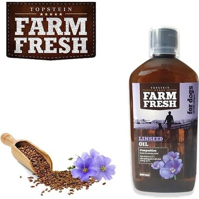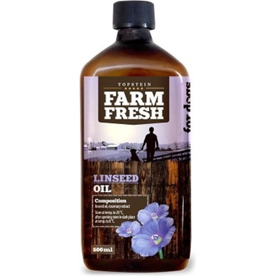 Farm Fresh Linseed oil Lněný olej 500ml Lněný olej Omegou-3 nabitý lněný olej Panenský, za studena listovaný, v potravinářské kvalitě Proč podávat lněný olej Farm Fresh: Blahodárné účinky na snížení kožních problémů Pro tvorbu zdravé a lesklé srsti Vhodný k léčbě a...