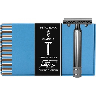 Holicí strojek na klasické žiletky FATIP Classic Metal black je skvěle vyvážený a elegantní strojek s plnou lištou. Nové hlavice "Testina gentile" jsou vyvinuté pro uživatele, kteří preferují méně agresivní styl holení. Má robustní konstrukci s kouřově černě...
