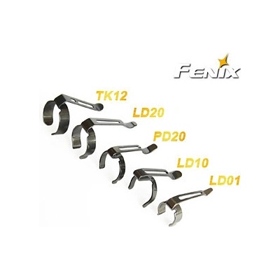 Náhradné spony pre svietidlá Fenix - rôzne druhy. Spona na Fenix E35 V3.0 - dĺžka 5,3 cm, váha 2g, vhodné na svietidlá s priemerom cca 21,5 - 23mm. Spona na Fenix LD12/LD10...