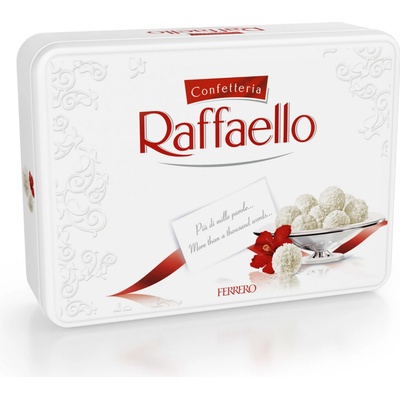 Specifikace Ferrero Raffaello 150g Popis produktu Ferrero Raffaello bonboniéra jistě potěší každého milovníka tohoto kokosového cukroví. Raffaello je vyrobené z kvalitního kokosu, jemné smetany a celé mandle. Luxusní chuť Ferrero Raffaello je určená pro skutečné...