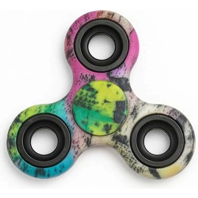 Trojhlavý jednoložiskový plastový středně těžký spinner s drsným, neklouzavým povrchem, jedinečným různobarevným abstraktním vzhledem a černými středy. Poslední trend, který...