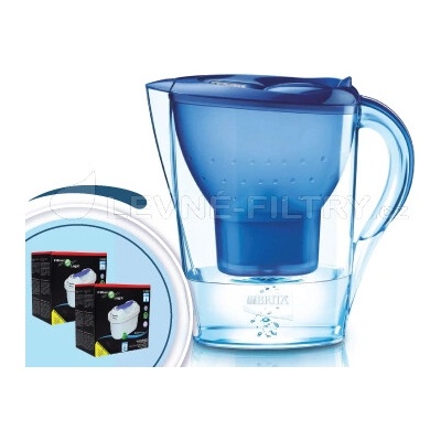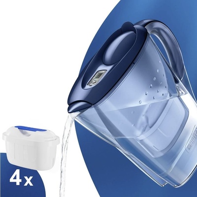 Výhodné balení konvice Brita Marella cool modrá a 4 ks filtrů Logic FL-402H Filtrační konvice Brita Marella o celkovém objemu 2,4l, je vybavena digitálním indikátorem výměny...