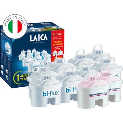 Roční balení filtračních patron do filtrační konvice LAICA • Životnost: 150 l / 30 dní • V balení 12 kusů (10 kusu Bi-flux univerzální a 2 kusy Bi-flux magnézium) • 5stupňová filtr