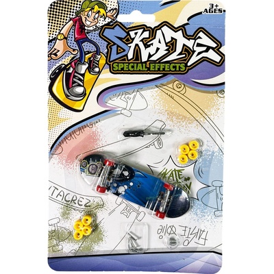 Prstový mini skateboard s nářadím a náhradními kolečky. Zvládnete ty nejlepší triky a kosti si nezlámete. Přes pult, na zábradlí a na jídelní stůl. Různé potisky prkna a barvy...