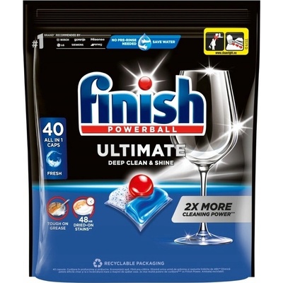 Finish Ultimate, kapsle do myčky nádobí, 40 kusů Zajišťují nejvyšší úroveň čistoty. Kapsle se 3 komorami zajistí hluboké čištění a diamantový lesk již od prvního použití,...