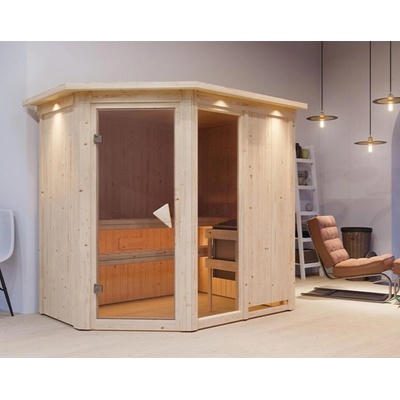 Německá kvalita od prémiového německého výrobce Karibu Holztechnik GmbH. Menší finská sauna určená pro dvě osoby. Má rozměr š 196 x h 151 x v 198 cm s rohovými dveřmi. Tento...