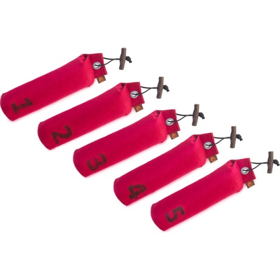 Sada pěti standardních dummy 500 g, které jsou číslovány 1-5. Díky tomuto číslování jsou nezaměnitelné. Už žádné zapomenuté dummy na tréninku. Číslované dummy jsou také ideální pro kontrolu práce psa v nepřehledném terénu, zejména při tréninku, kde pes nesmí zaměňovat....