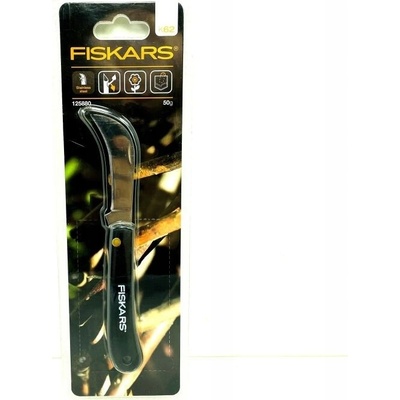 Nůž srpek 17 cm 50 g K62 Fiskars 125880 - Čepel z vysoce uhlíkové oceli - Rukojeť z druhotně zpracovaného plastu upevněná mosazným nýtem - Nůž určený k stříhání větví a výhonků a vyhlazování ran vzniklých po řezání pilou - Hmotnost: 50 g - Délka: 170 mm - Šířka:...